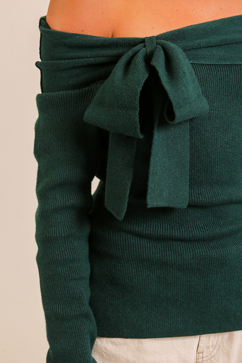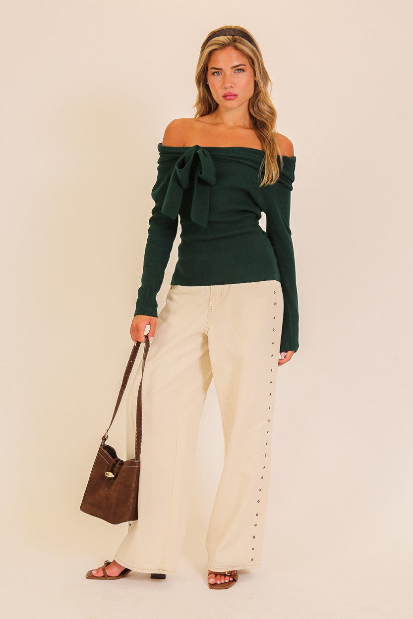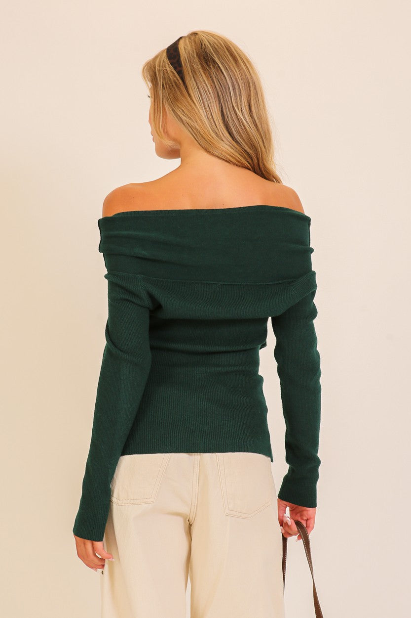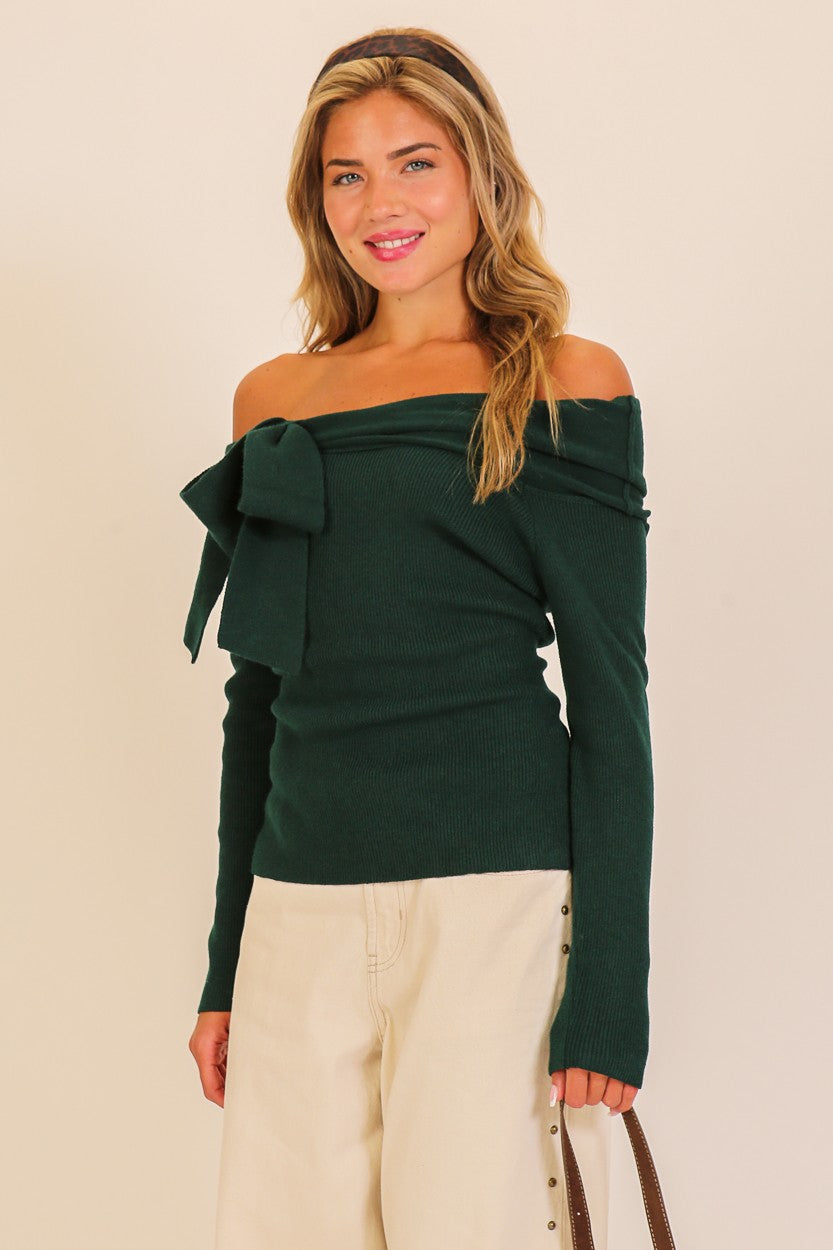 This charming off-shoulder sweater combines cozy comfort with