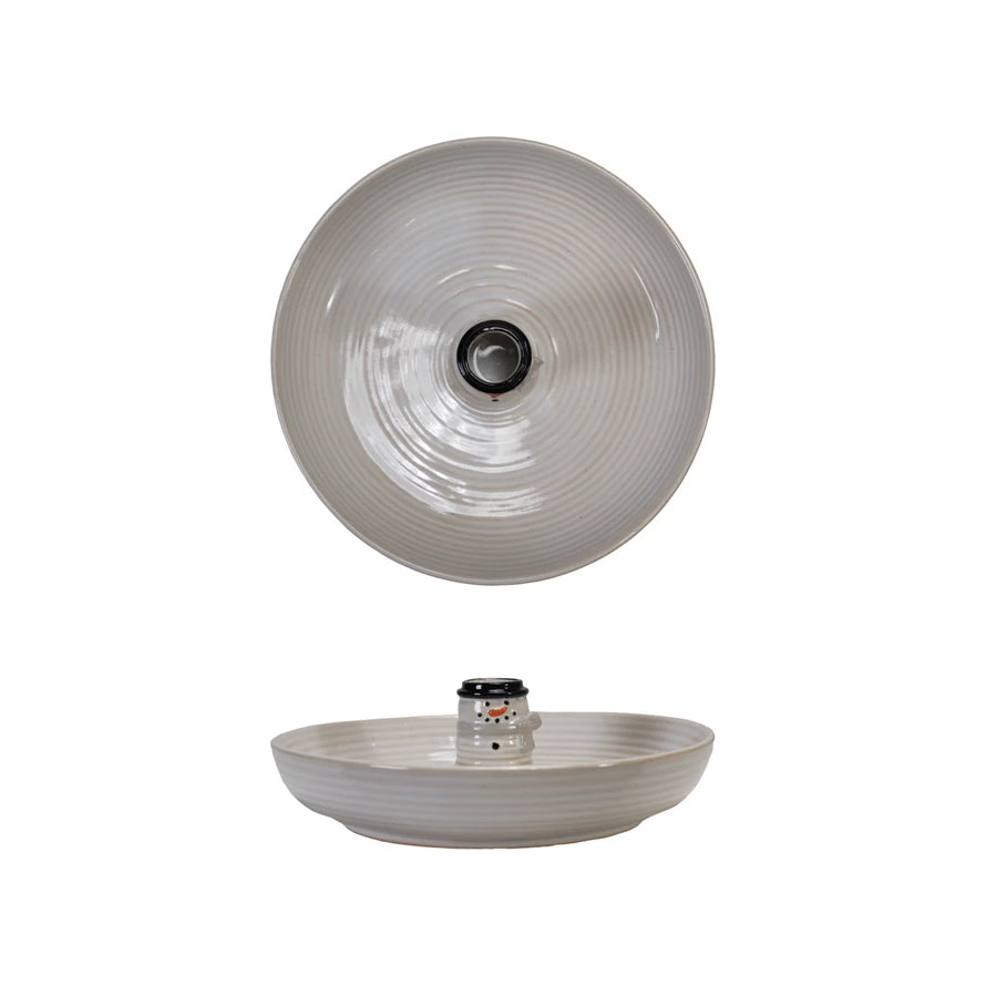 8-1/2" Round x 2-3/4"H Stoneware Ribbed Bowl w/ Snowman Shaped Toothpick Holder