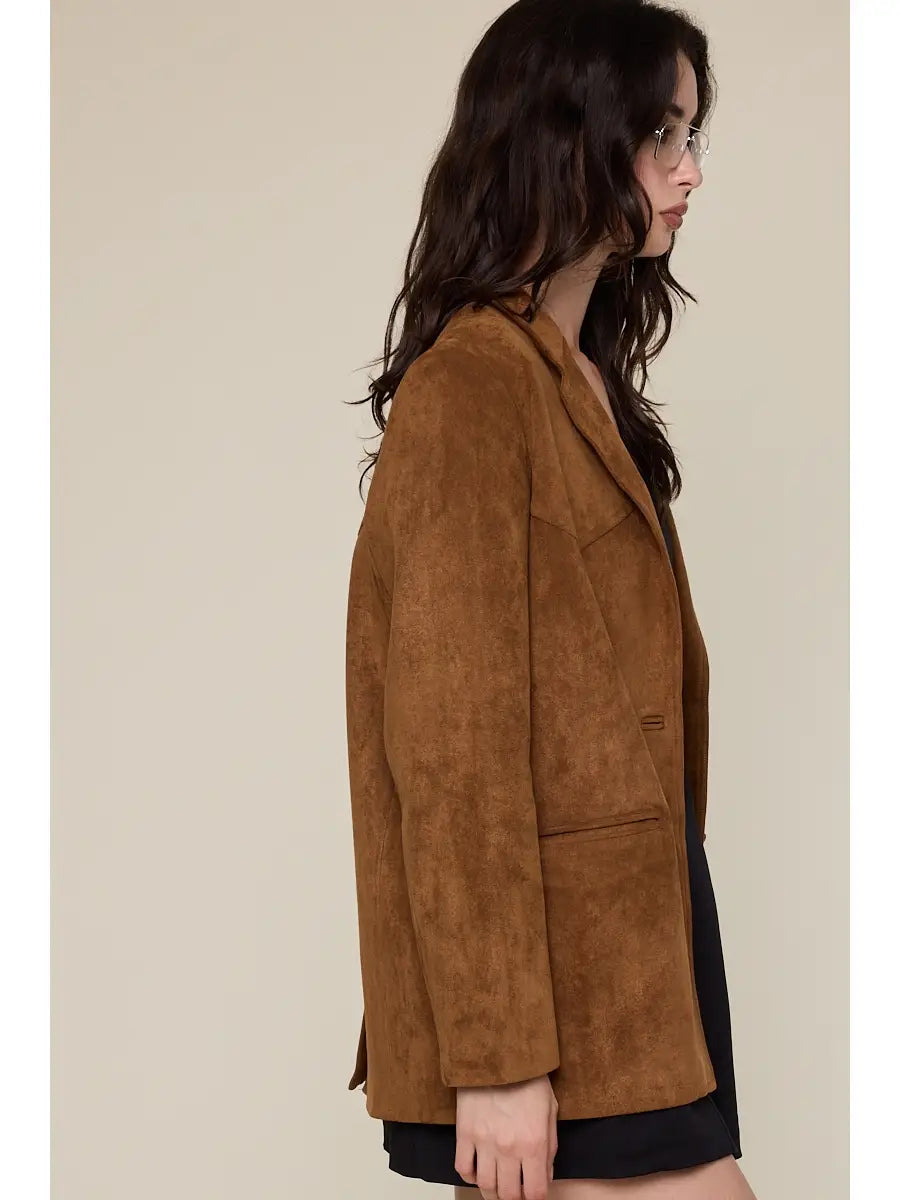 Camel Brown Color Collared Neck Long Sleeve Front Double Buttons Front Pockets Oversized Jacket SELF:95%POLY/5%SPAN LINING:100%POLY * Model Info: Height 5'10'' Bust 31'' Waist 25'' Hip 35'' 1/2