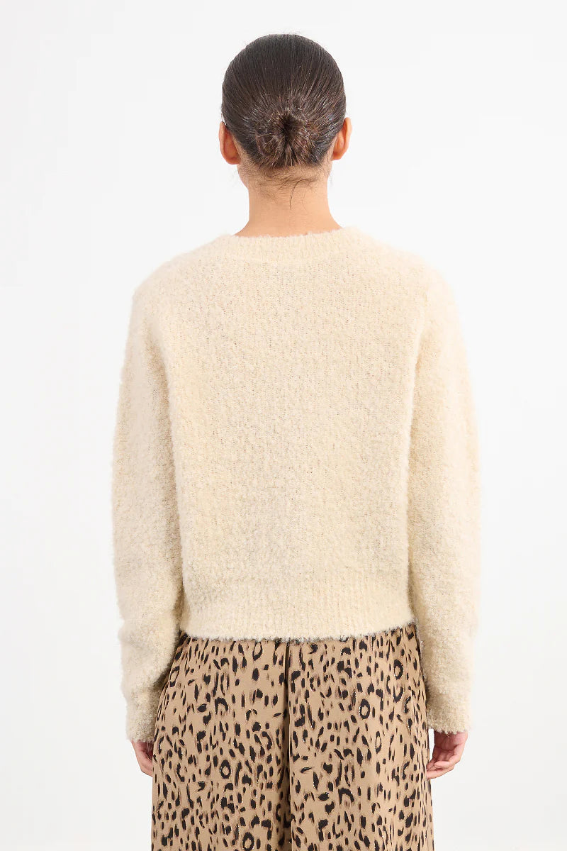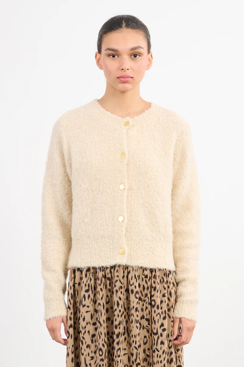 Cream Textured Knit Cardigan W/ Gold Buttons